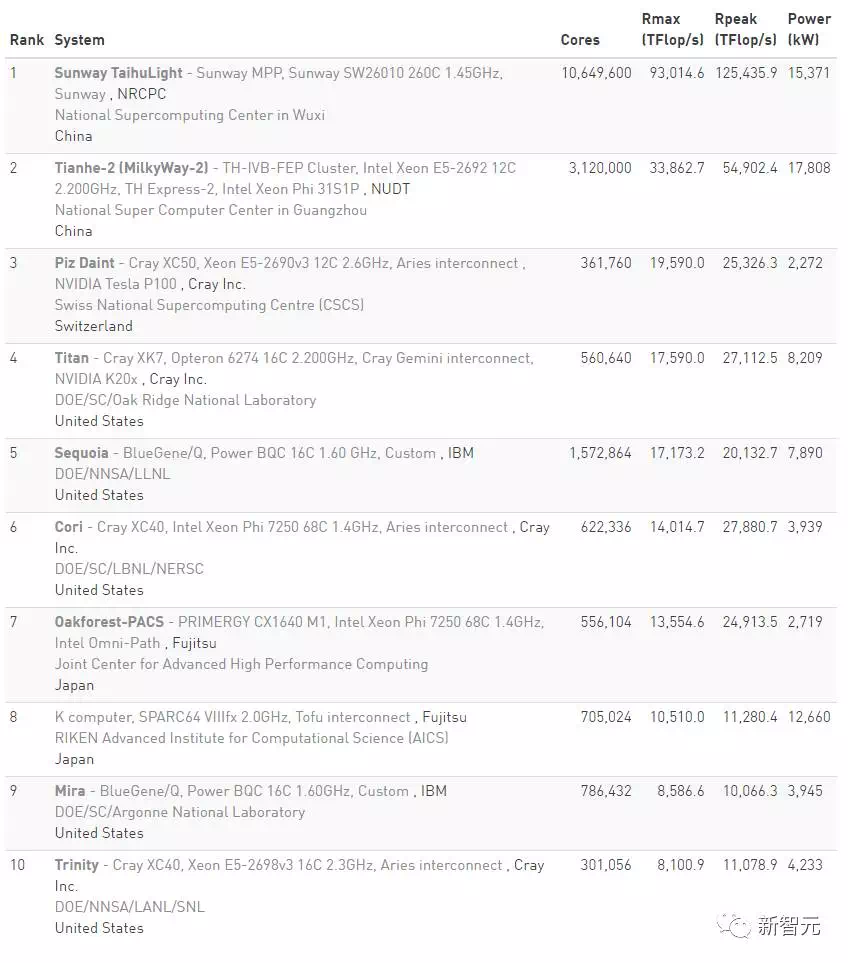 【Top500榜單公布】神威·太湖之光三連冠,美國20年來首次跌出前三